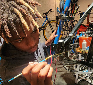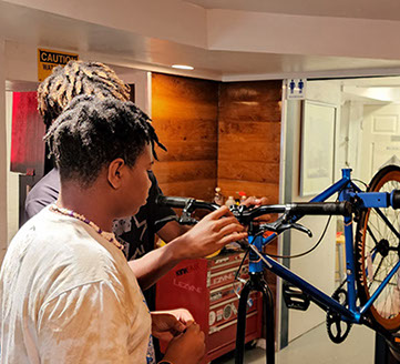 This innovative, hands-on program provides youth with opportunities to engage in hands-on learning activities that combine critical thinking, practical skills, teamwork and mentoring. Youth learn the basics of bicycle repair, earn community service hours, and receive a bike for themselves to keep.